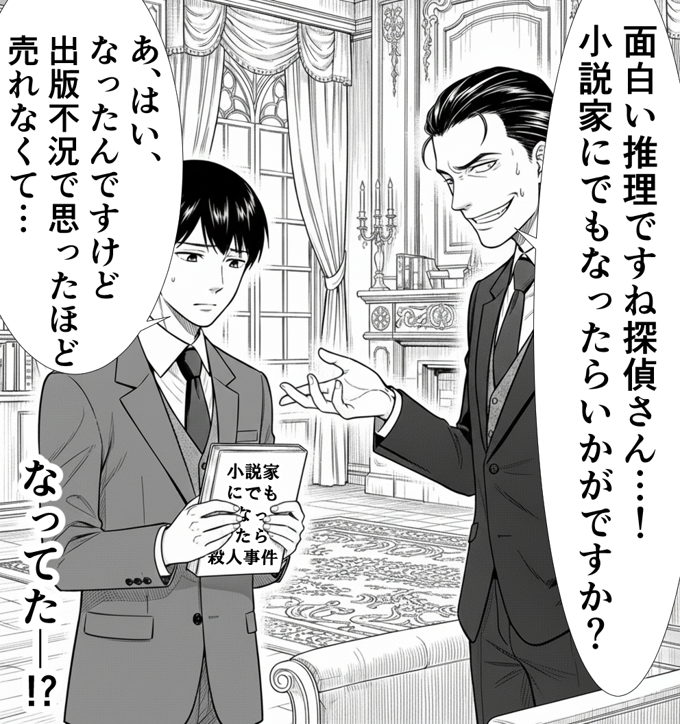 「面白い推理ですね。探偵さん、小説家にでもなったらどうですか?」